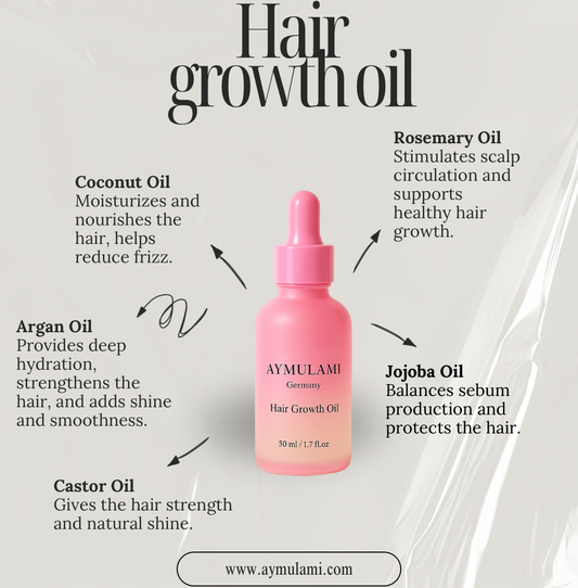 Powered by natural oils like Argan, Rosemary, and Jojoba – Aymulami Hair Growth Oil nourishes, protects, and stimulates growth for radiant hair every day.